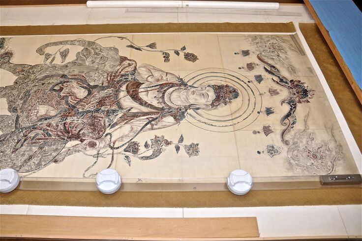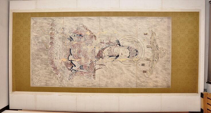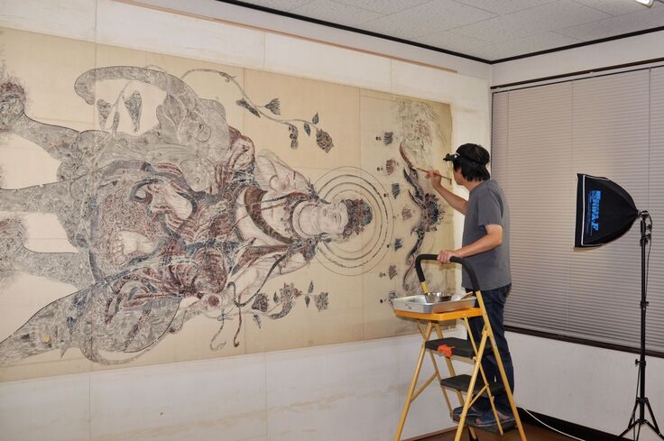 (写真:鈴木空如模「法隆寺金堂壁画」第8号壁「文殊菩薩像」縦3m×横1.5m)