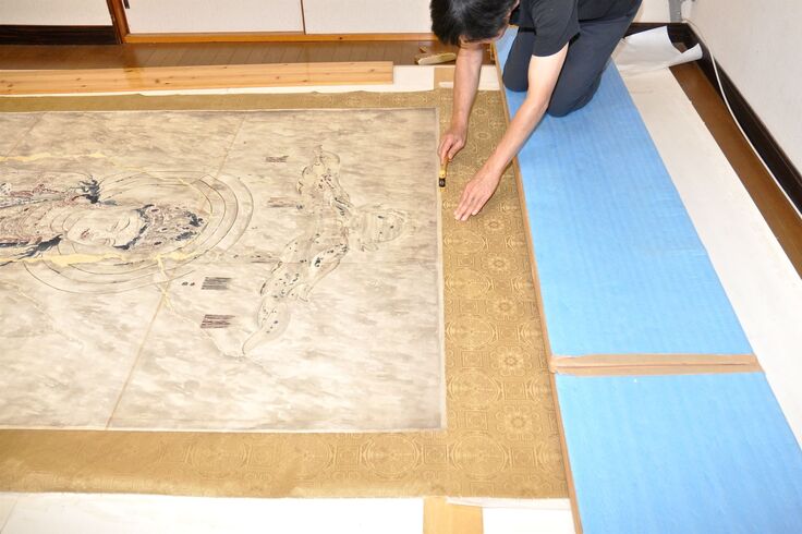 ・絵具どめ(絵具の剥落を防ぐため膠水などを補う作業。剥落どめともいう。)