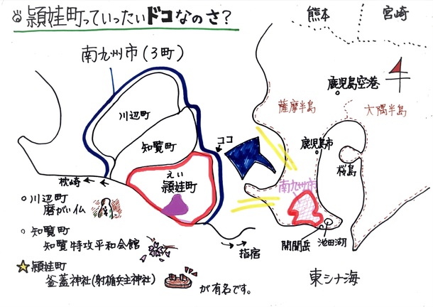 南九州市は、川辺町・知覧町・頴娃町の3町から成っています。
