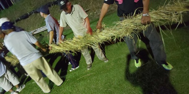 数日前から各家庭で茅を刈り取り、乾燥させておきます。