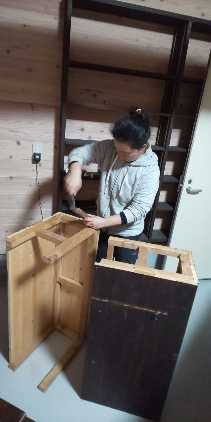 お古の電気ドリルとノコギリ、金づちが相棒でした。
