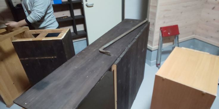 ビスの打ち間違いのいっぱいな天板のカウンター