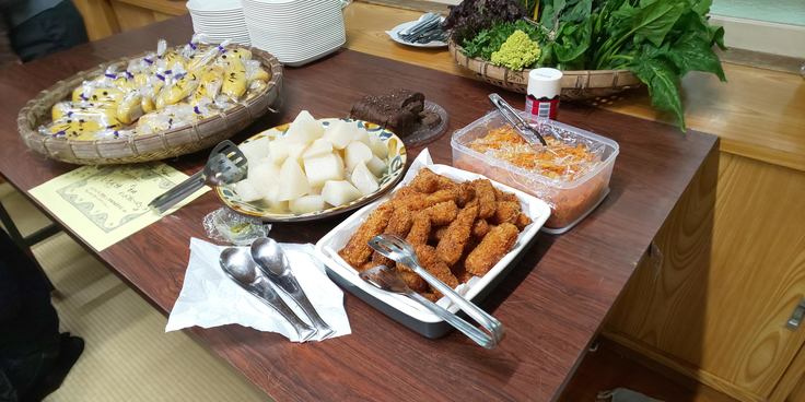 開聞岳大根の炊いたもの、キャロットラぺ、人参の丸ごとフライ。