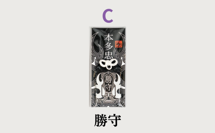 勝守(かちまもり)は、戦国時代最強と謳われる本多忠勝公にあやかった御守です。忠勝公は57戦無敗と云われ、生涯を通じて戦に勝ち続けた事から、試合に勝つ、試験に合格するなどのご神徳を願う御守です。