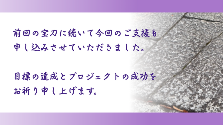 応援コメントを拝見しておりますと、前回の宝刀村正のクラウドファンディングにご支援をいただいた方も多く、この度の「令和の大改修」へもご賛同賜りましたこと改めて感謝を申し上げます。