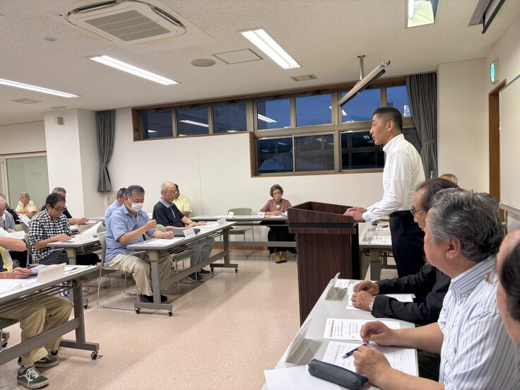 6月11日(水)の夜に、葛見神社がある岡区の連合町内会の定例会に参加させていただき、そこにいらした岡区の代表である各町内会長の方々や岡区の役員の方々に宮司の方から大樟の樹勢回復事業への取り組みやクラウドファンディングについて説明をさせていただきました。クラウドファンディングを通じて地域の方々に大樟の現状を理解していただき、今後の取り組みが地域のための