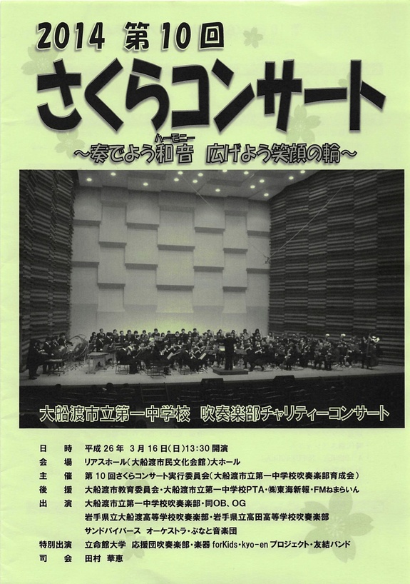 2014年3月16日 「さくらコンサート」岩手県大船渡市リアスホールにて