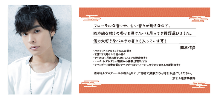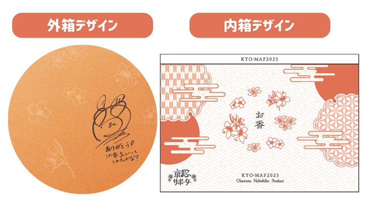 京まふ2025おこしやす大使を務める岡本信彦さん、石見舞菜香さんプロデュースの返礼品「伝統工芸品・お香セットコース」のパッケージデザインが決定しましたので改めてご紹介させていただきます!