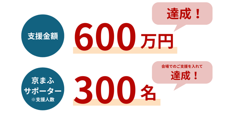 2日間の会場でのご支援人数を足すと、京まふサポーターの人数が目標としていた300名を大きく上回り、現在478名となりました!