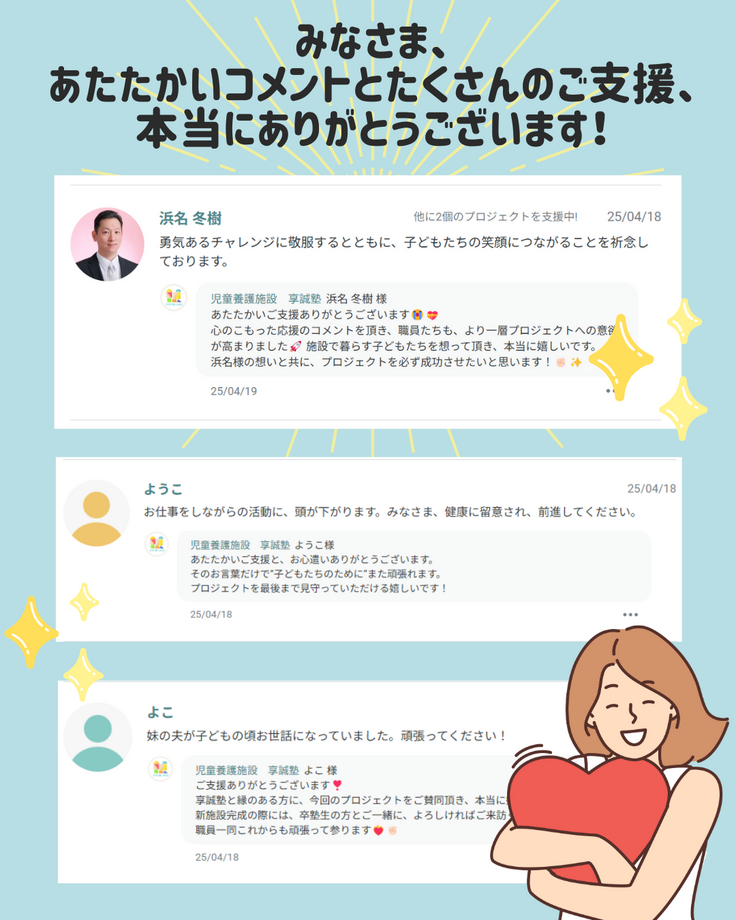 ※特別なリターンを用意しない代わりに、子ども達のより良い環境のため、諸経費を除き全て、家具・家電購入に活用させていただきます。