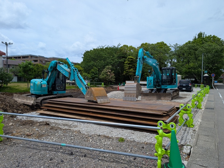 以前あった事務所の土地に重機などが入り、いよいよ新しいお家を建てる準備に入っていきます。