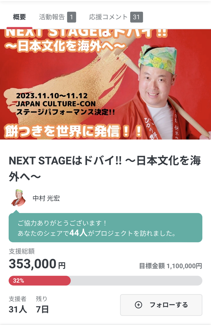 明日で50%以上は達成したいと思っておりますので、引き続きご支援の程よろしくお願い致します☺️