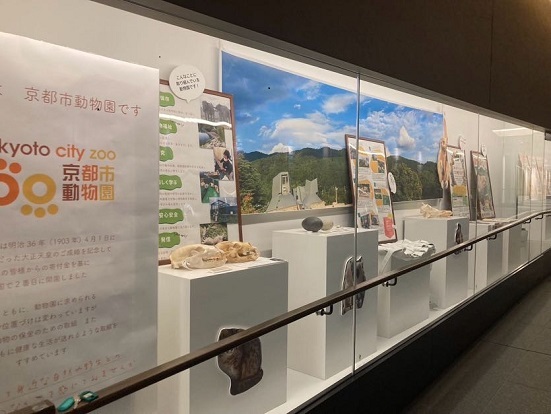 こちらでは、パネルを使って動物園の取組を動物たちとともに紹介しております。