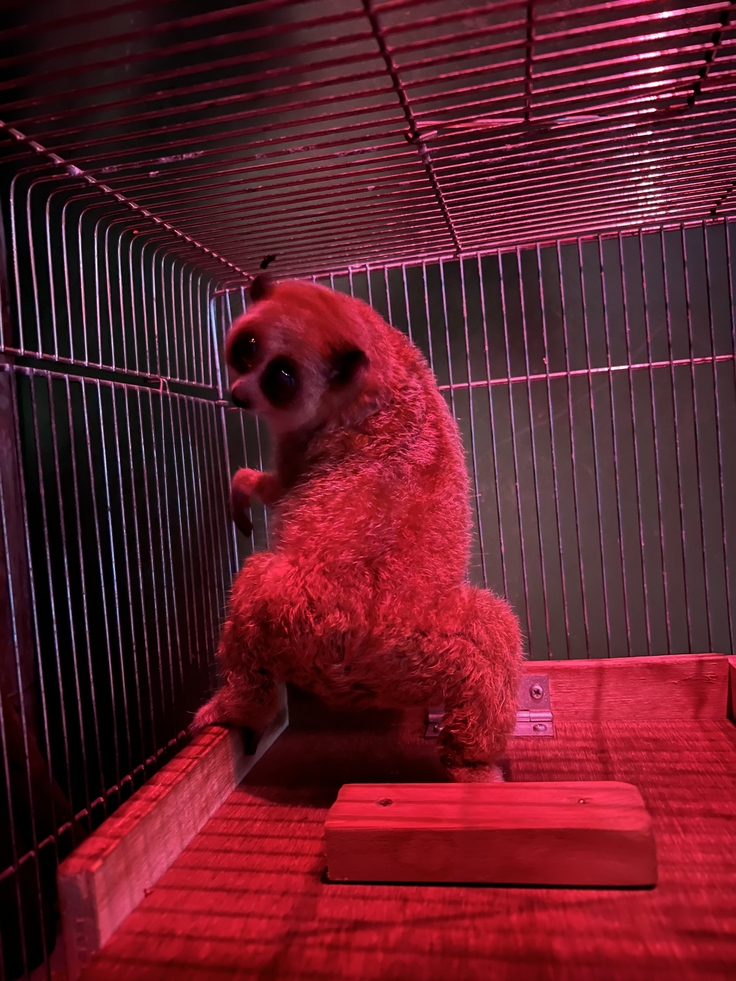 熱帯動物館の裏側から、レッサースローロリスやショウガラゴの様子を元担当者がお話ししました。