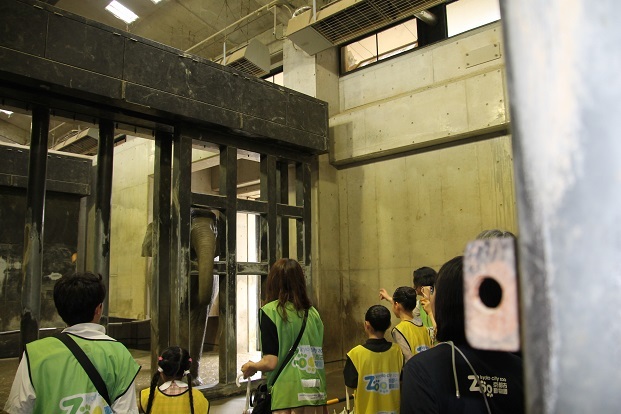 ツアー内容は、開催年度によって異なりますが、今回はゾウ、キリン、ゴリラのバックヤード等々をご案内しました。