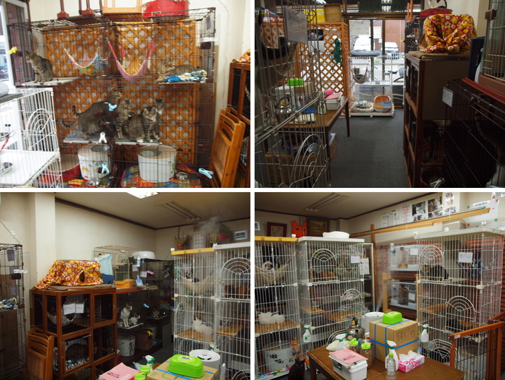 京都どうぶつあいごの会では、動物福祉の観点からも飼育環境には最善の努力をしていますが、116匹の保護猫が生活しており、一般の飼猫とは違いケージの中に居ることが多いです。
