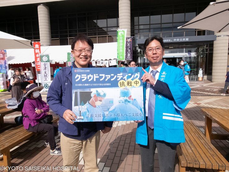(写真右の青い法被が市長さん、左は当院の宮部事務部長です)