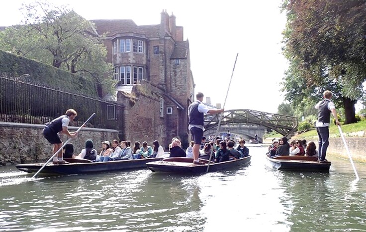 これはこの研修の大きな特長です。渡英前年から週末の旅行の準備を始めます。旅行先の選定からグループ形成を経て、教員からは鉄道やバスを利用した旅程作り、座席指定の取り方、宿泊施設の選び方等の指導も行いますが、週末のことでもあり、実施の責任は参加者自身が追う形で、自由に英国内を旅します。長期間かけて準備をするため、実際にそれが実行できたときの歓びは絶大なものになります。安全な校内に留めるのではなく、積極的に英国内を動き回ってもらいます。なまりで聞き取れない地方の英語、交通機関の日英の常識差などの面も重視します。これを経ると以後の外国行が怖くなくなります。遠くまで出かけられるように、現地研修の週末のうち一度は金曜日を休みとし、木曜日のロンドン発の夜行寝台列車(1年前から予約可)の利用を許可し、スコットランドの端でも行けるように配慮しています。今年もエジンバラ、ヨーク、ロンドン、湖水地方、マンチェスター、コッツウォルズ等々、グループ毎に異なる旅程で参加者たちが修行に出かけました。今回は2週前に予告された鉄道ストライキとぶつかり、その対応を現地であっという間に参加者たちが合意形成する様を見ると、この研修がいかに異文化対応能力を付けさせるのかがよくわかります。旅行は、第1週末の土日のうち天気がよい方がパンティングとハイキングに充てられるため、それ以外の日が自由になり、第2週末は木曜の寝台列車から日曜一杯まで、3泊3日の旅が可能で、第3週末は土日の1泊旅行になります。