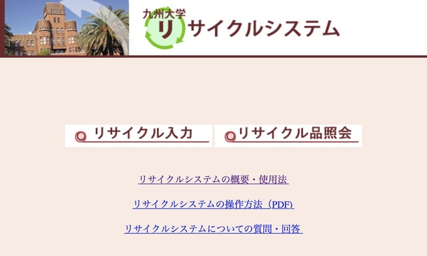 実は九大には、学内限定で、「リサイクルシステム」というのがあります。「財務部資産活用課」が運用してます。やっぱり活用できる資産や環境は、活用し尽くさなきゃね!(←代表・三島のポリシーでもあります)