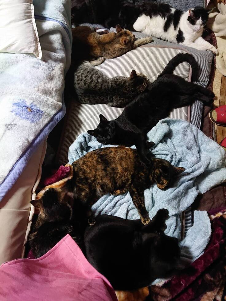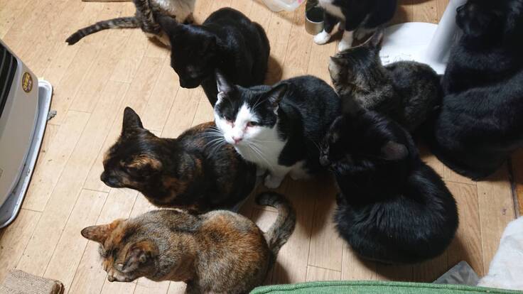 社員、ボランティアのそれぞれの住居区域において匹数は変動しますが、令和4年8月末日で社員7人の自宅であわせて91匹を飼養しており、また社員8人の住居の近隣区域と近隣の公園において、一代限りの命を生きてくれている猫さん86匹を昼夜お世話しています。