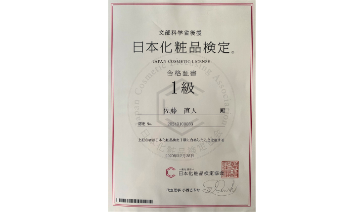 そのためには、まず自分自身がスキンケアについての知見を身に付けなければ本物の商品は作れないと思い、日本化粧品検定を受験しました。日本化粧品検定は、化粧品やスキンケア商品の中身(成分など)まで理解し、科学的根拠のある正しい知識で活用法を提案できる専門家を目指す資格です。