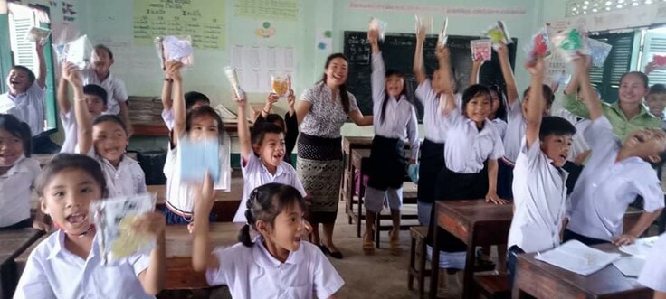 先日、支援先の小学校が再開され、ラオスへ発送したプレゼントをようやく子どもたちのもとへ届けることができました!