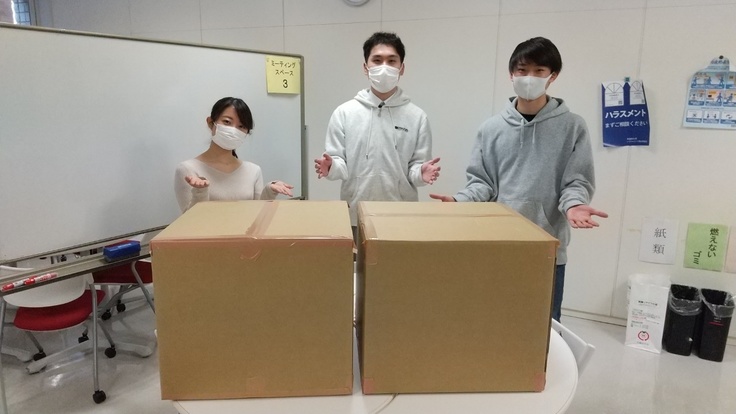 また、みなさまのご支援金を発送に用いる段ボール(2730円)(https://www.boxbank.jp/box/box_standard/fd33/?sku_code=FD33-0003-a)、ガムテープ(110円)(100円ショップにて購入)の購入にも使わせていただきました。