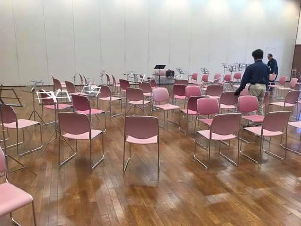 1月5日第1日目(リハーサル初日です)椅子や、譜面台を並べるところからスタートです。