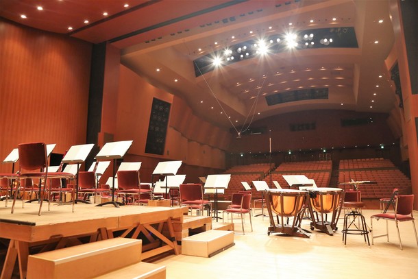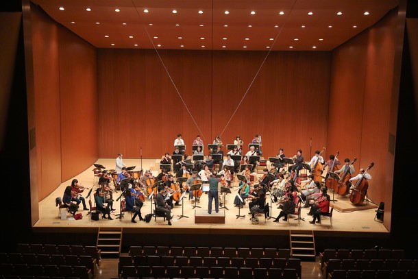オーケストラのメンバーが揃い、コンサートマスターがチューニングの音を出します。