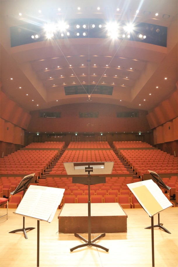 オーケストラのメンバーが来る前に、椅子・譜面台・楽譜を揃えます。