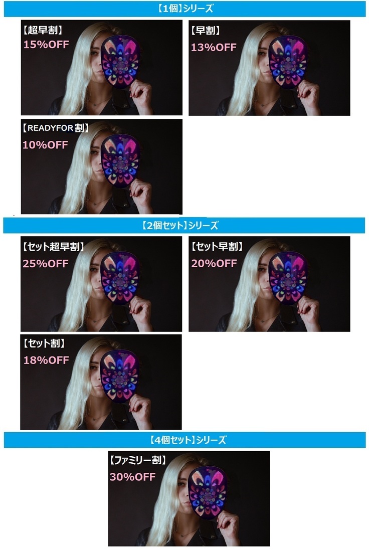 [LED Faceカバーの一般販売予定価額19,800円/個の15%OFF]
