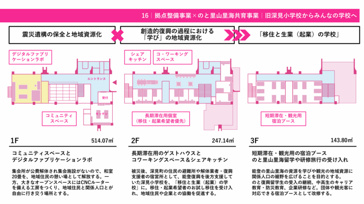 そこでブロックのおもちゃで身近な旧深見小学校を再現して輪島市深見町に寄り添った空間を作り、その周りにもたくさんのブロックのおもちゃを無作為に置き、子供たちが創作に夢中になれるような空間を作りたいと思いました。