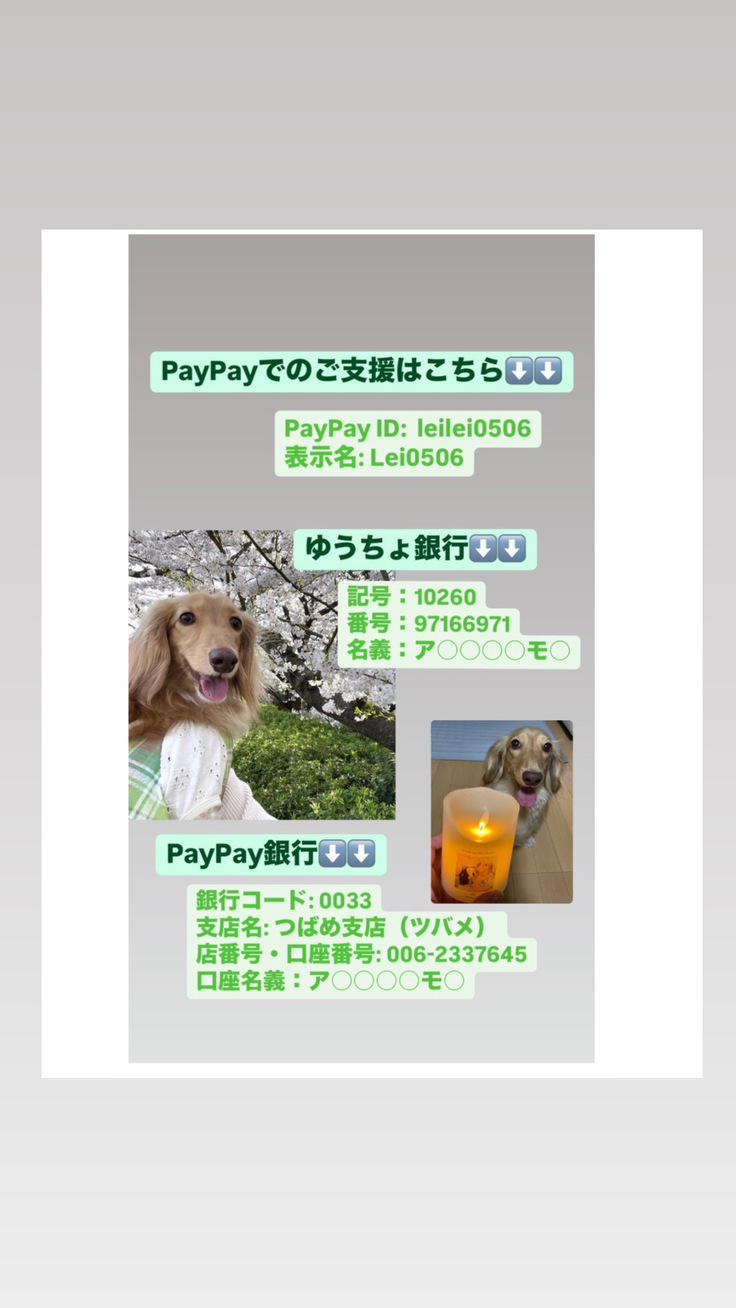 治療費がかかり、お礼をすることが出来ず申し訳ありません。
