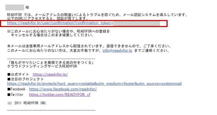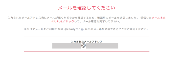 ③ご自身のメール受信ボックスを開き、READYFORからの受信メール内容に従い、リンク先をクリックください。