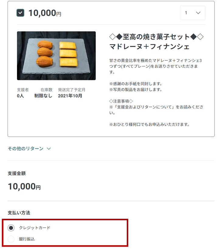 ①リターン品をお選びください。