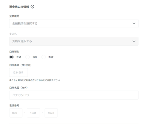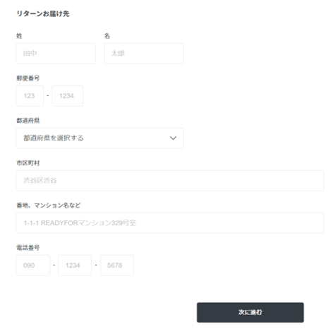 リターン品のお届け先の住所等をご登録ください。