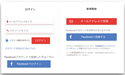 READYFORを初めて利用される方はアカウントのご登録をお願いします。