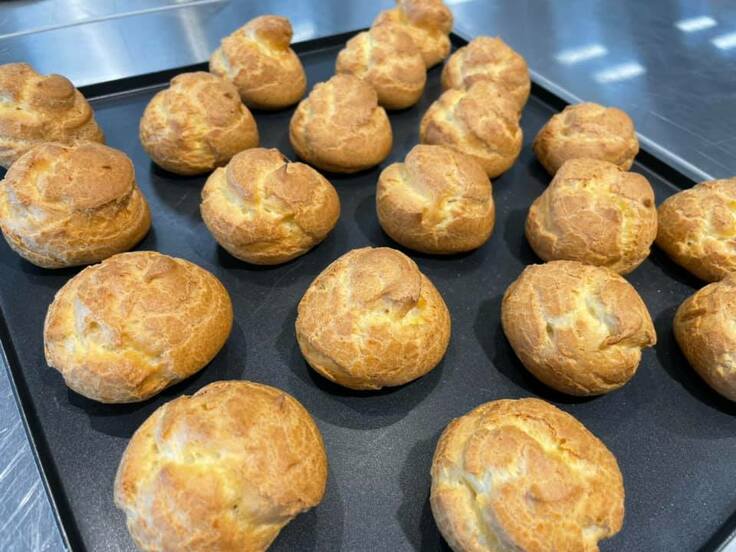 そして、シュー生地を焼く際のコンベクションオーブンのレクチャーを受け、家庭用のオーブンとは違い、均一に焼き上がっているシュー生地を見てまた感動しました。