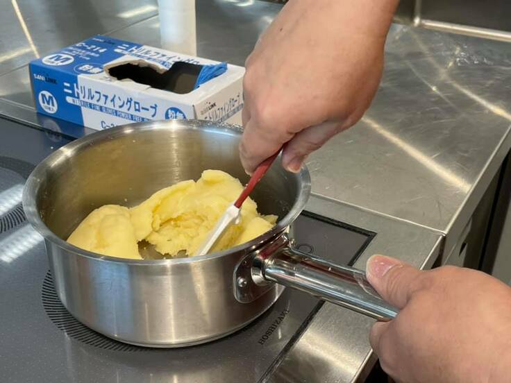 そして、シュー生地実演のレクチャーを受けました。ガスよりも早く沸騰すること、また、ガスよりも使い勝手が良いことに感動しました。