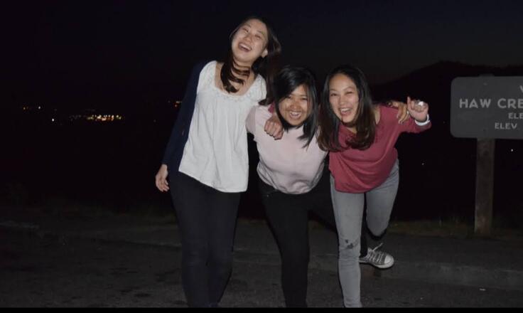 ↑左から千織、チョ、佳恵 アメリカ留学中の一コマ。(2015年)
