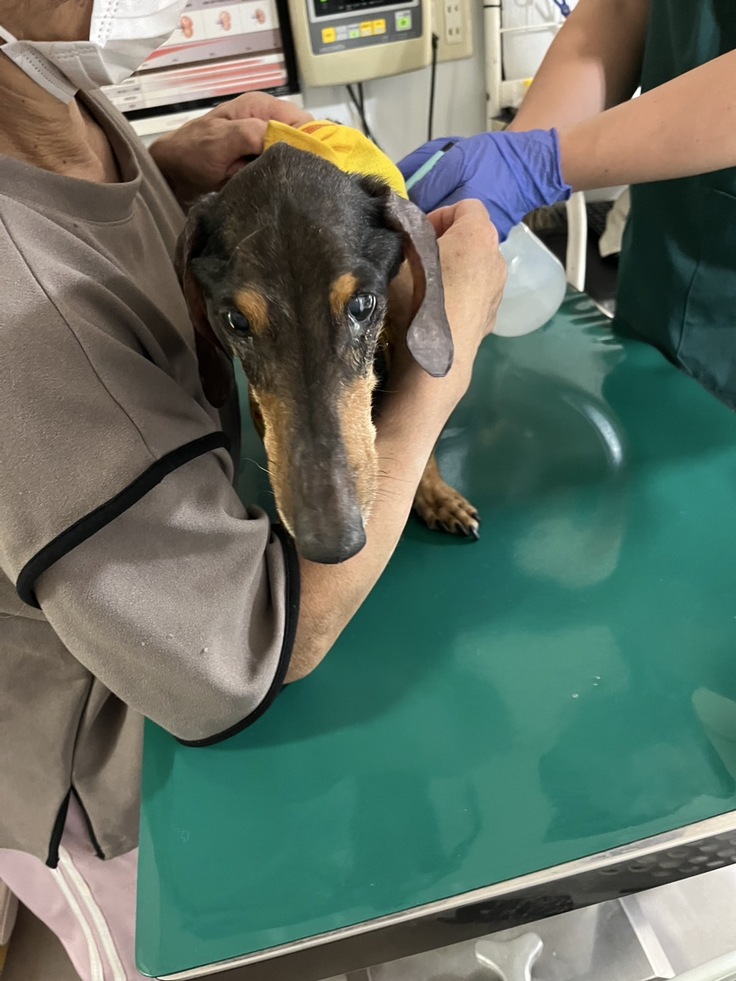 りょうま 血便にて腹部エコー中🏥おじいちゃん犬だけど食欲旺盛👨🏼🦳
