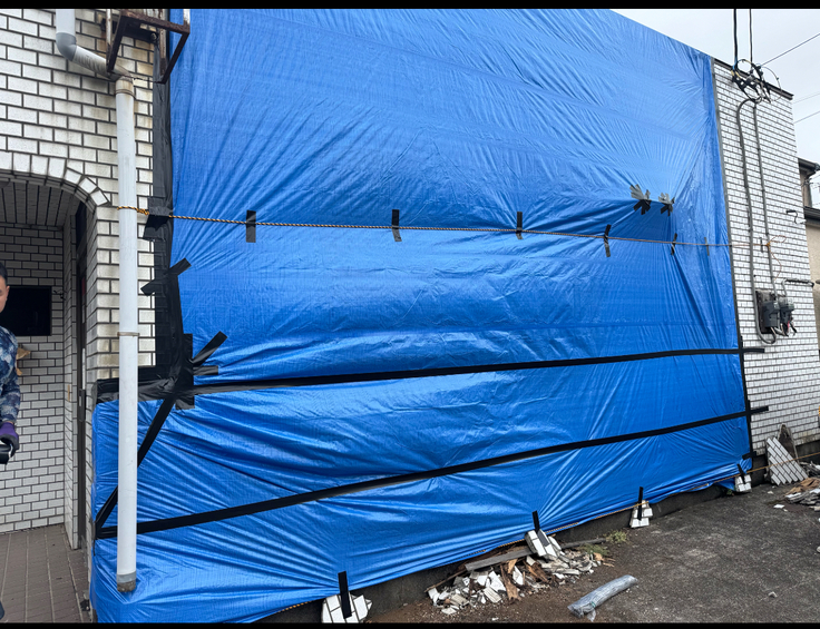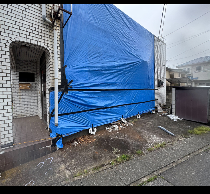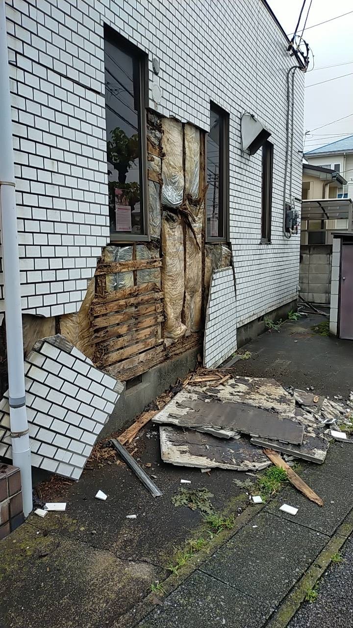 保護施設建設予定地の建物の外壁が崩れ落ちました