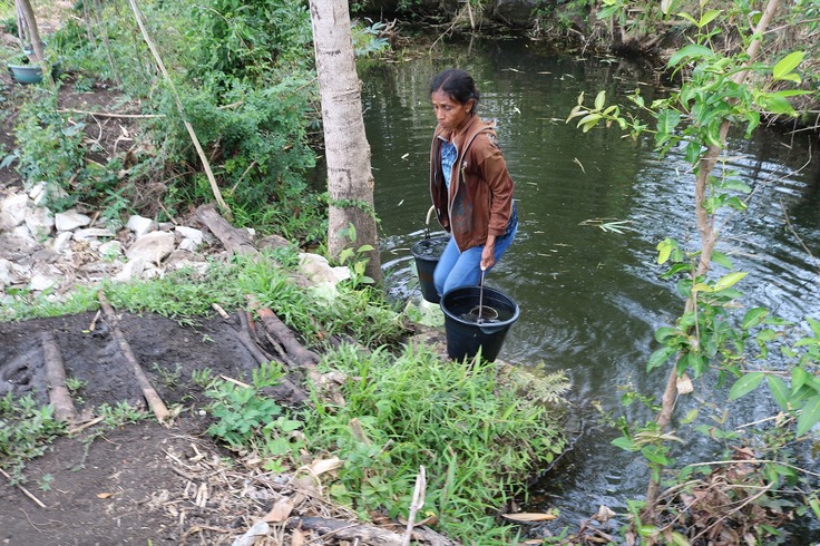 インドネシアはとても広い国で、政府の行う開発だけではすべての地域をカバーすることはできません。スンバ島もそのような開発から取り残されている島です。水は、飲むため、料理に使うため、体を洗うため、洗濯をするため、様々な目的で日々の生活になくてはならないものです。そのなくてはならない水を使うために、スンバ島の農村部に暮らす人たちは毎日水を汲みに行かなくてはなりません。水は重いので、持ち運べる量に限りがあります。特に、たくさんの水を必要とする農業をするのは難しいです。村には働けるところはありませんから、多くの村人が現金収入を得る機会がなく貧困状態にあります。