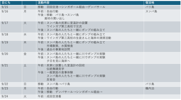 ポンプ開発以外にも参加者の皆さんは高校生との国際交流やスンバ島の文化体験など、スンバ島での滞在を満喫しました。