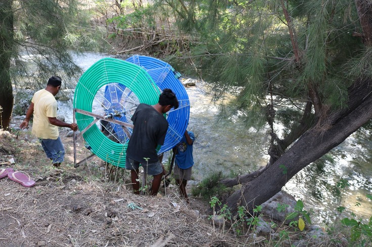 そしてついに2024年、私たちは皆さまからご支援いただいた資金で、スンバ島でポンプを作り実験を行いました。実験した川では、水面から3メートル上方にある畑に水を汲み上げることに成功しました。2024年度の目標にあげていた「このポンプで川から畑に水を汲み上げる」という課題はクリアしました。今後は、他の川でも同じように使うことができるか確かめていきたいと考えています。そして、汲み上がった水をどうやって畑にめぐらせるか、水道管の配管や給水タンクを置く場所などの検討を進めたいと思います。
