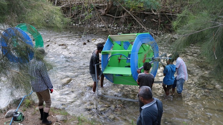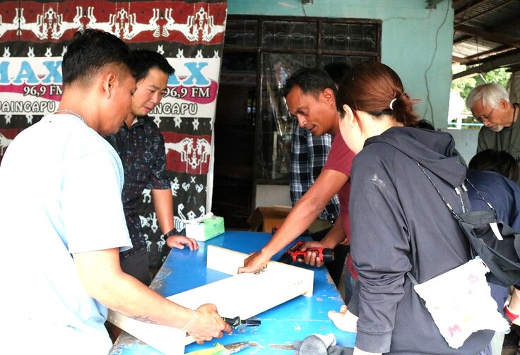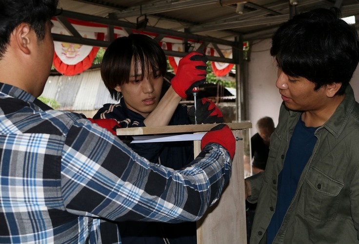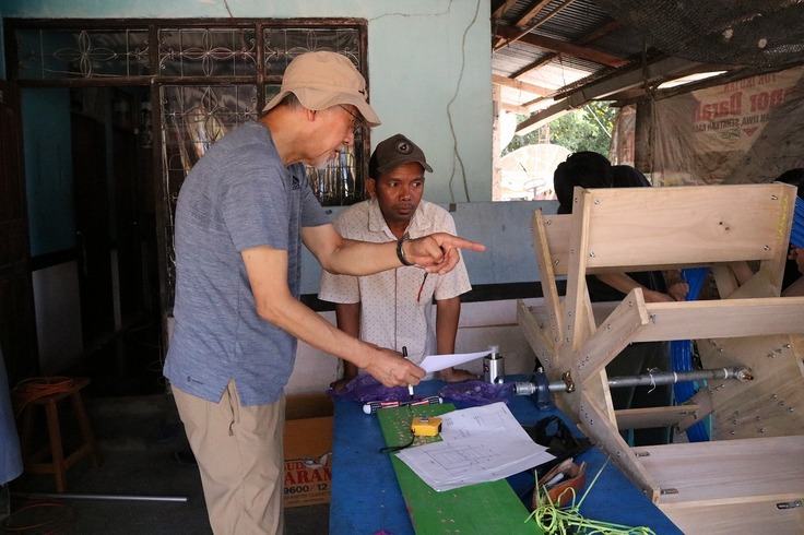 これまで日本国内でポンプ開発のボランティアに参加してくれた芝浦工業大学の学生さんを中心として11人の日本人がスンバ島に渡航し、スンバ島の人たちと一緒にポンプの組み立てと実験を行いました。