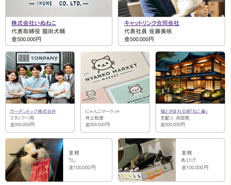 10万円以上のご寄付で企業名などを併記できる枠、3万円で犬猫の写真限定の枠をご用意しております。