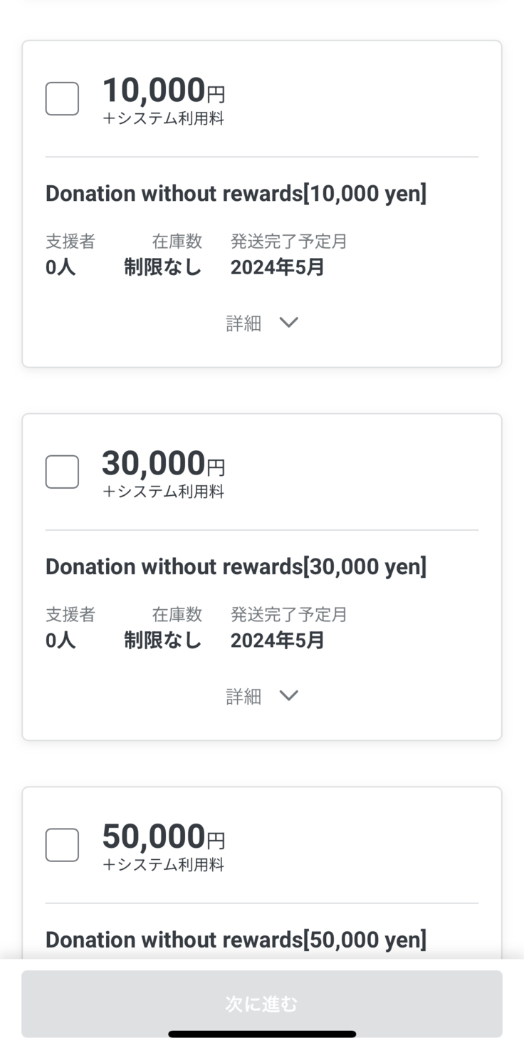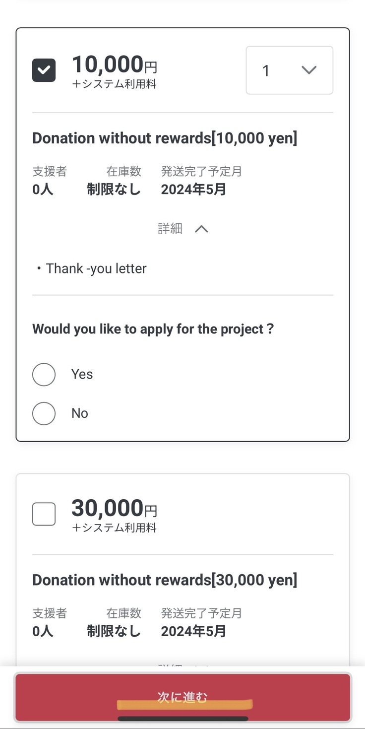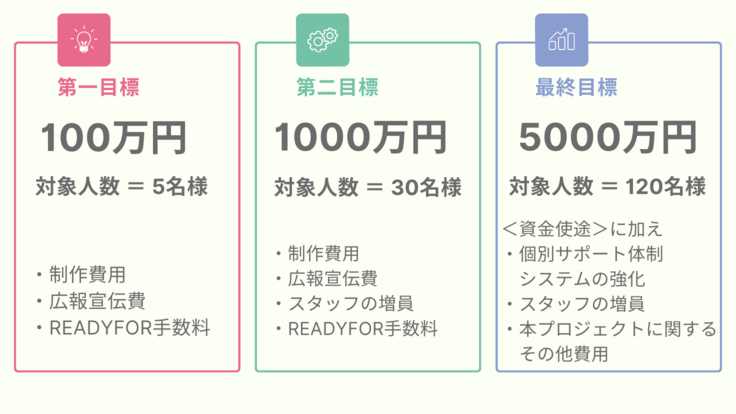 ・ Target number of people: 5 to 120 people (the number of targets will increase depending on the total amount of support)