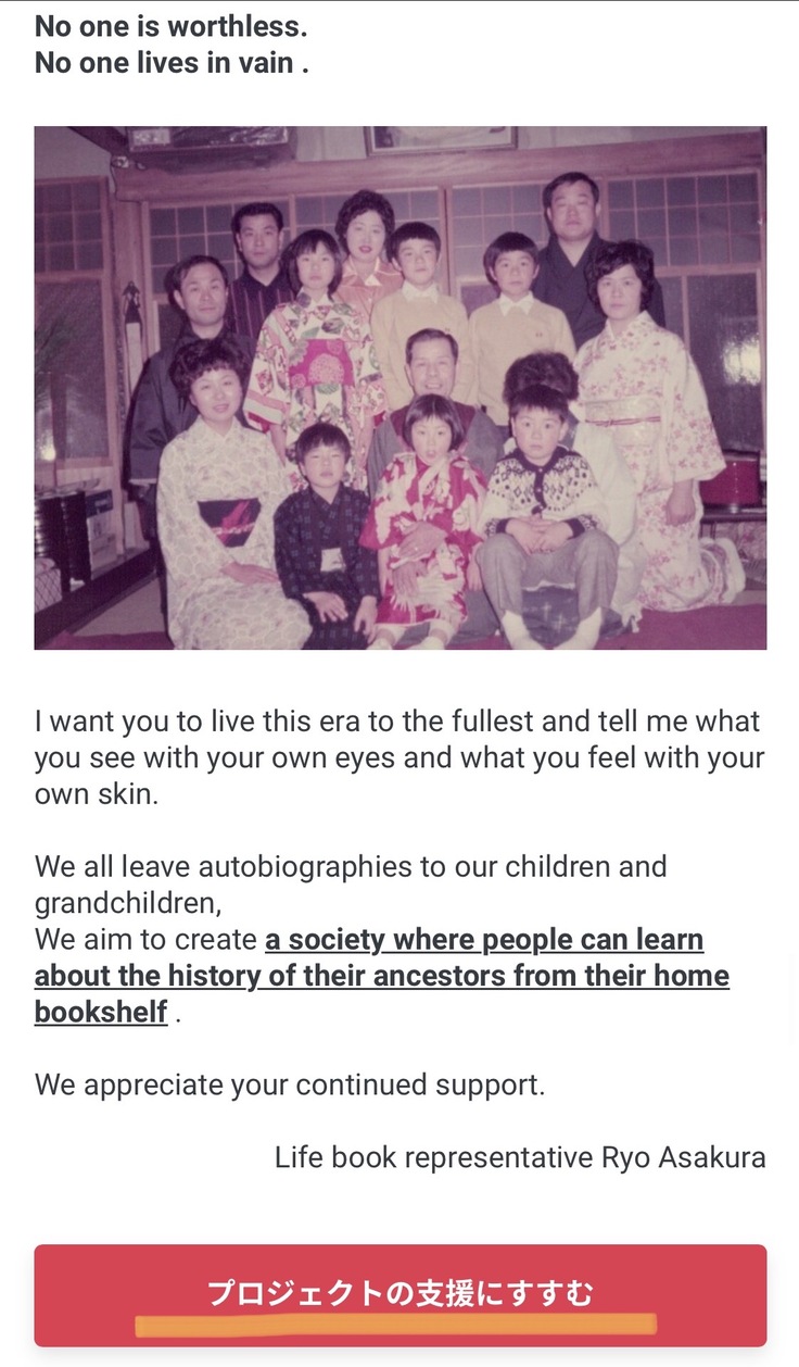 We provide an autobiography production service that presents your family's "life" in a one-of-a-kind book .