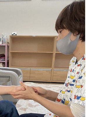 本プロジェクトの担当もさせて頂いています。私は重症心身障害児の支援に携わって4年になりますが、まだ勤め始めて間もない頃に、アロマについて知る機会があり、JAA(日本アロマコーディネーター協会)のライセンスを取得しました。